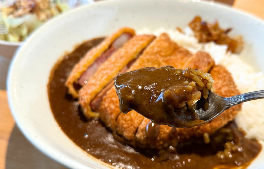 看板メニューは、手間ひまかけた「燻製ロースカツカレー」。4日間かけて仕込むカレーは、コクがありつつも程よい辛さで食べやすい味わいです。