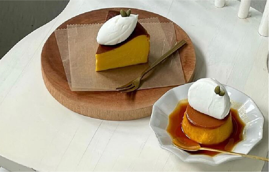 せせらぎ通りのお洒落カフェで、秋だけのお楽しみかぼちゃスイーツが登場。濃厚チーズケーキにどっしりプリン。サングラスショップ併設のユニークな空間で、季節の甘さを味わいませんか?